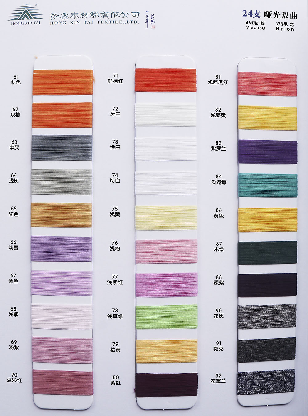 (24支/63%粘胶Viscose 37%尼龙Nylon)(30支/80%粘胶Viscose 20%尼龙Nylon)(43支/79%粘胶Viscose 21%锦纶Nylon )